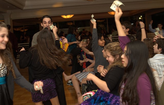 | Hurry hurry hurry. Sit down as quick as you can.MC in action at Bat Mitzvah.We're playing Musical Chairs in combination with Scavenger Hunt |